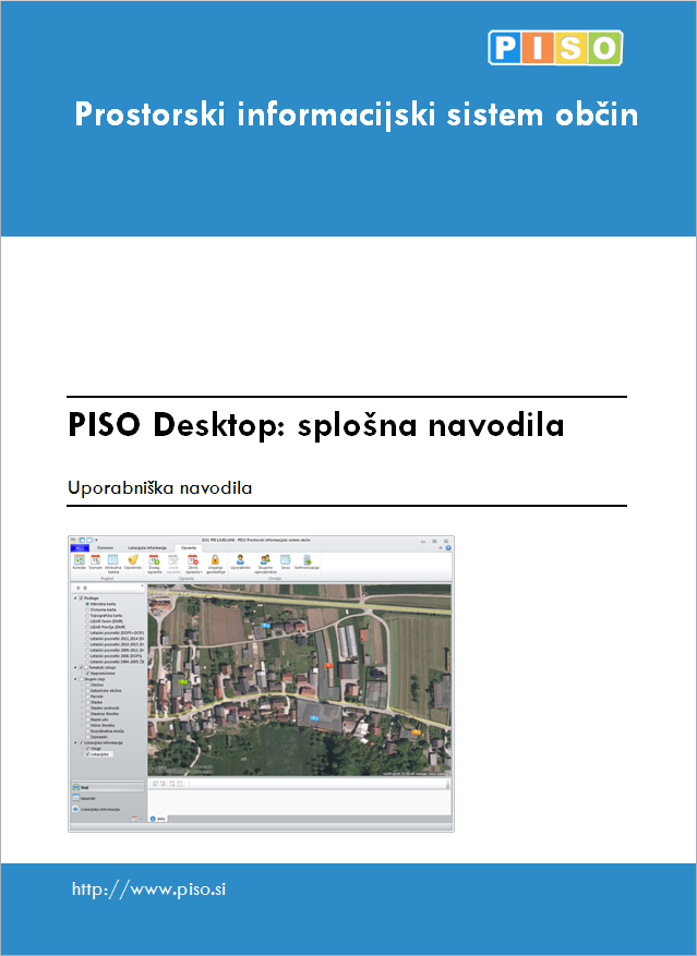 Pripravili smo splošna navodila za uporabo funkcionalnosti PISO Desktop-a, med katerimi so prikaz poljubnih geolociranih podatkov v najrazličnejših formatih (shp, dwg, tif, ...), 3D prikaz, geometrijska poizvedba, dodajanje opravil in druga orodja.